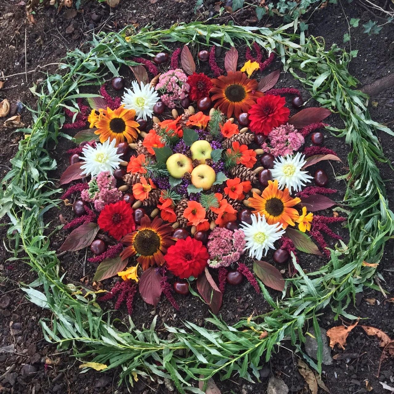 Set out for a walk with nature, carrying a basket or bag and a pair of scissors/secateurs. State the intention that you wish to gather foliage, berries and flowers that represent all that you are harvesting at this time. As you walk, reflect on what has grown in your life this year, what success have you enjoyed, what lessons have you learnt? Each time you think of something, hold that recognition in your heart-mind and seek out a plant, tree or bush that you can gather from that represents what you are harvesting. Repeat until you have a hearty basket-full and grateful heart! Either out in nature or in your garden, kneel on the earth and spend a few minutes acknowledging all that she has helped you grow. Beginning at the centre, start to lay down your natural treasures to create a mandala, giving thanks as you go for all the beauty and abundance in your life.